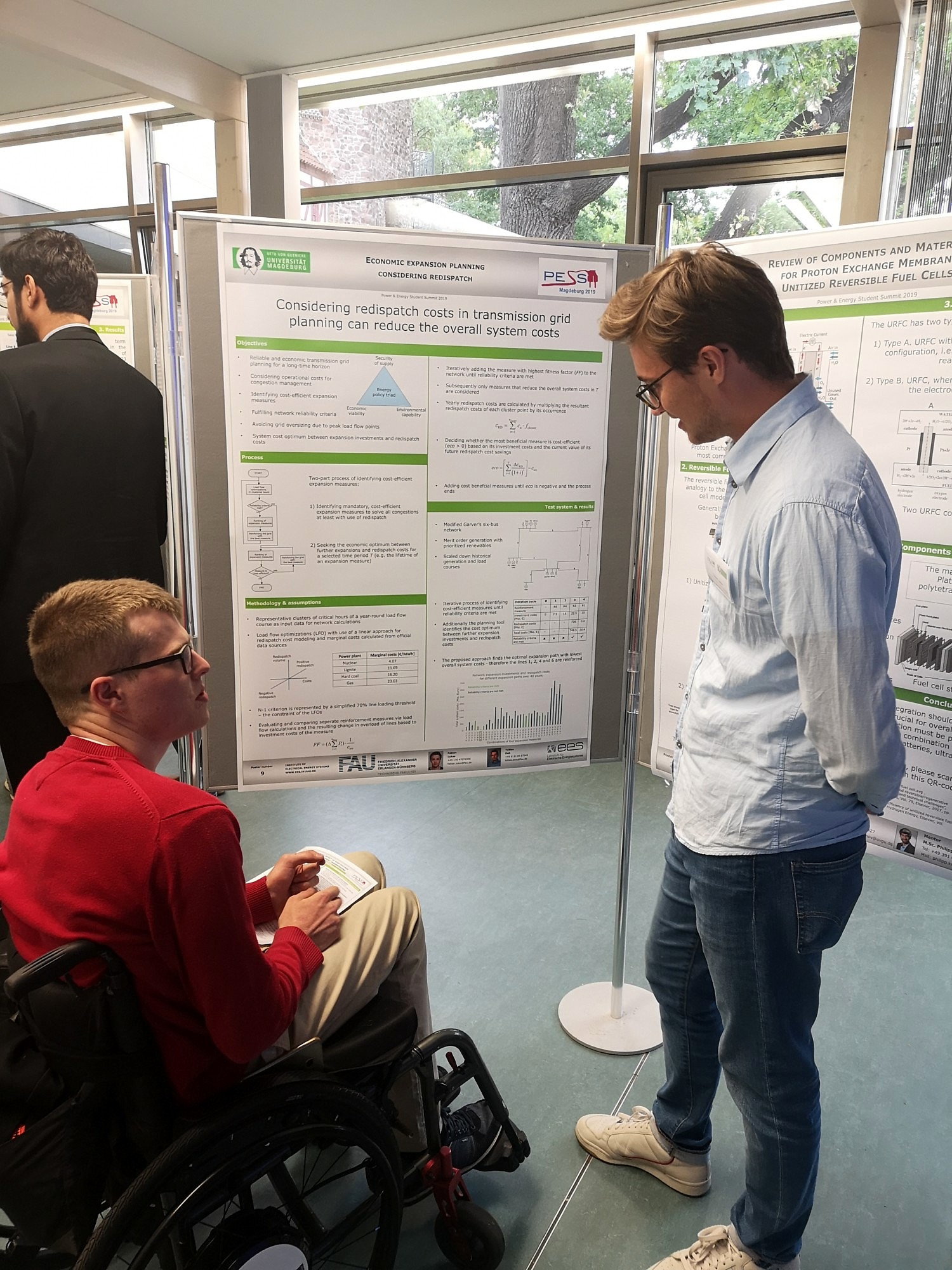 Der Lehrstuhl für Elektrische Energiesysteme wurde von Frau Elisabeth Heusinger und Herrn Fabian Lukas vertreten, die ihre Forschungsergebnisse ihrer studentischen Arbeiten präsentierten. Die eingereichten Publikationen werden in den kommenden Wochen mit den Titeln „Setpoint Adaption of DC Converters using Security Constrained Optimal Power Flow“ und „Economic Expansion Planning Considering Redispatch“ veröffentlicht.