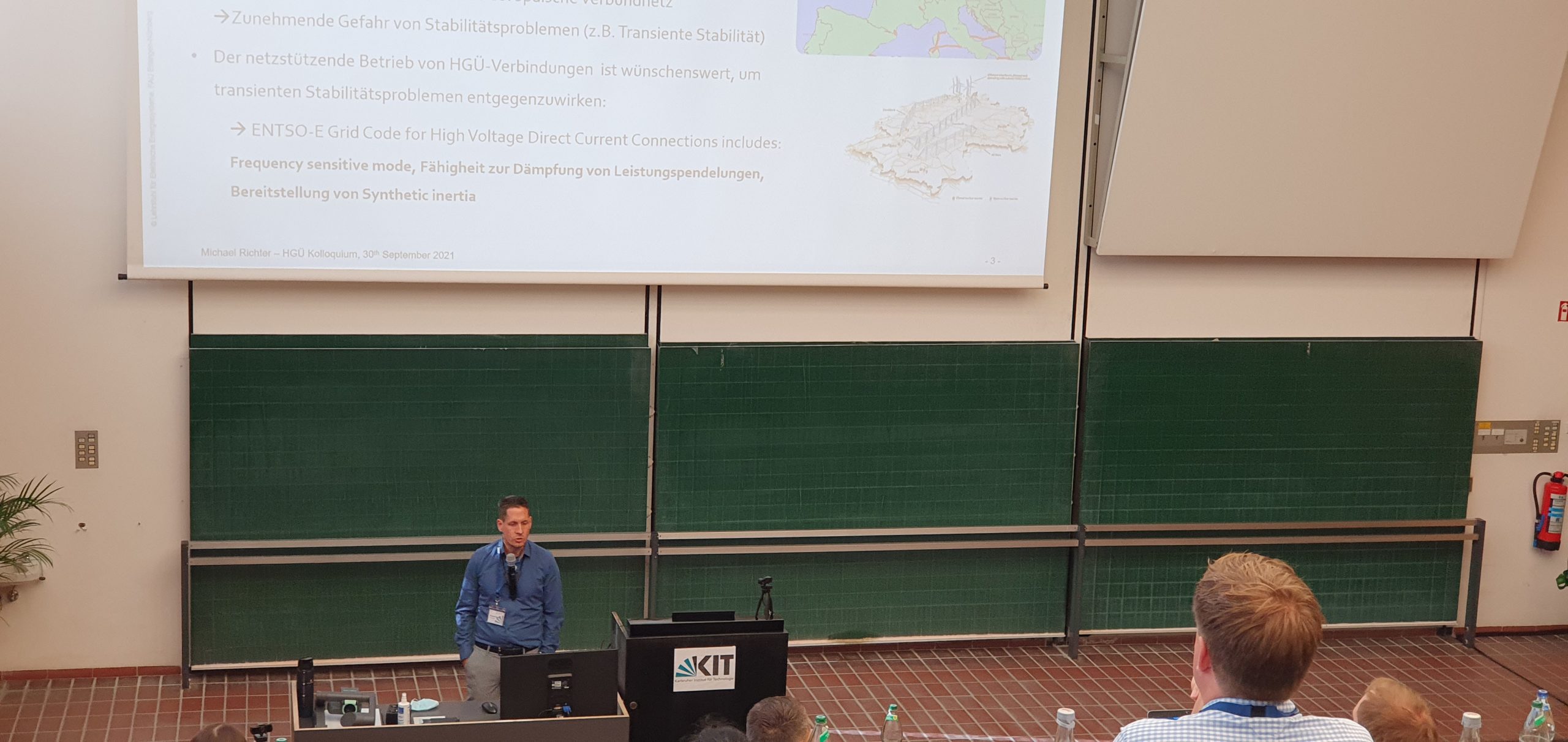 Vom 30. September bis 01. Oktober 2021 veranstaltete das Institut für Elektroenergiesysteme und Hochspannungstechnik des KIT einen hybriden Workshop rund um das Thema Hochspannungs-Gleichstrom-Übertragung (HGÜ). Dabei trafen sich zahlreiche wissenschaftliche Mitarbeiter verschiedener akademischer Institutionen sowie Mitarbeiter aus der Inustrie um über die zukünftigen Herausforderungen bei der Integration von DC-Netzen in Drehstromsysteme zu diskutieren. Herr Michael Richter, Herr Johannis Porst und Herr Alexander Raab nahmen für den Lehrstuhl für Elektrische Energiesysteme an dem Kolloquium teil und präsentierten aktuelle Ergebnisse aus Ihren Forschungsarbeiten. Weitere Informationen zum HGÜ-Workshop am KIT finden Sie hier.