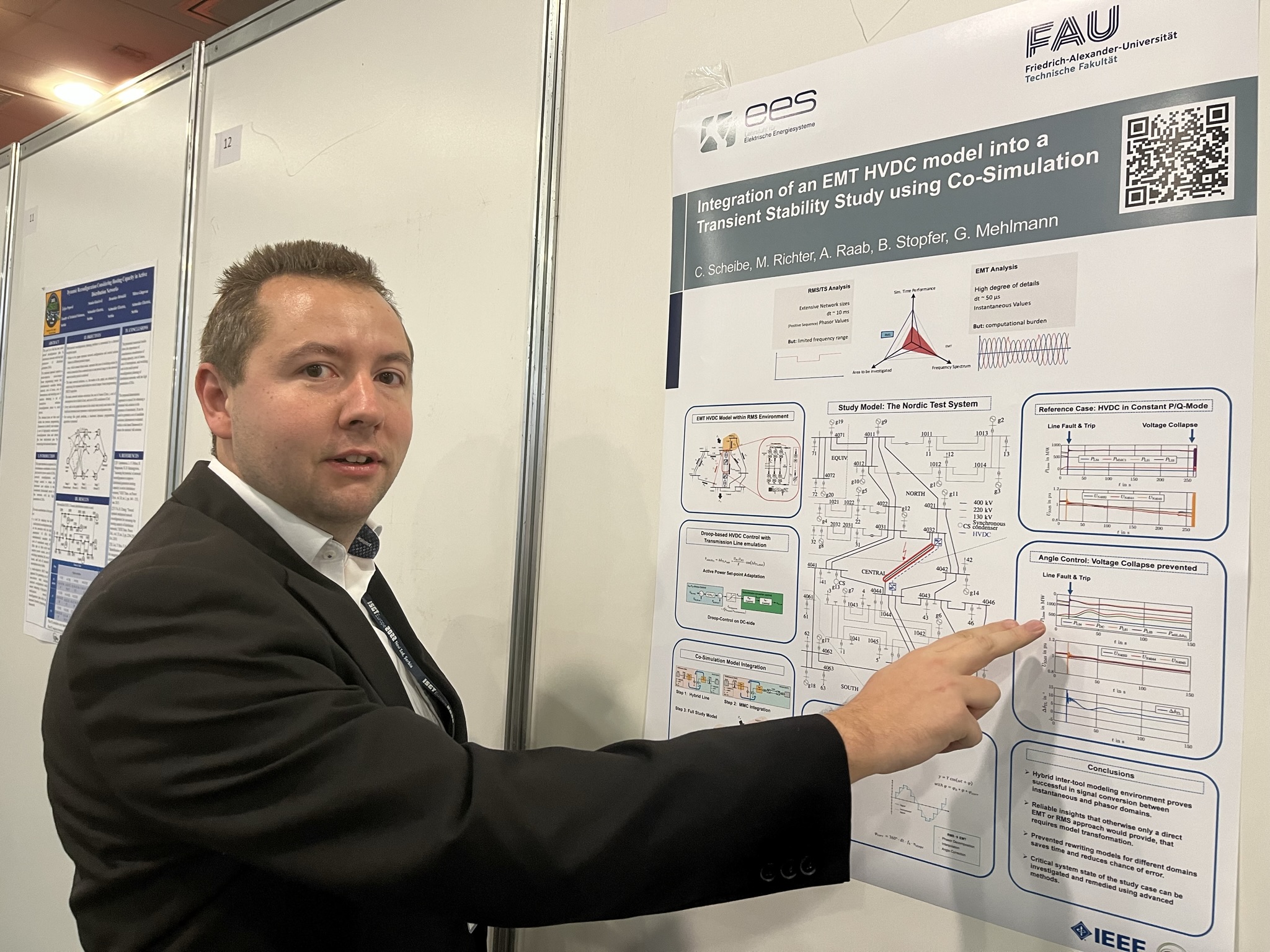 Georg Kordovich presented his paper titled „A hybrid Protection Scheme based on Deep Reinforcement Learning“. Christian Scheibe discussed the topic „Integration of an EMT HVDC model into a Transient Stability Study using Co-Simulation“ and Janick Meyer presented his results on the paper „Protection Security Assessment with Guiding Optimization Criteria based on Stability Indices“.