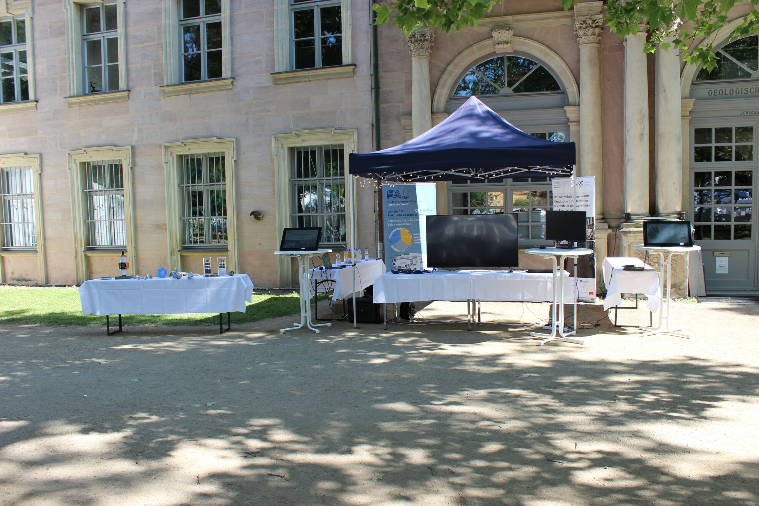 Am 24. Juni fand das alljährliche Schlossgartenfest der FAU im Erlanger Schlossgarten statt. Neben den bekannten Tanzbühnen unterschiedlicher Musikstile und der beliebten Lasershow, hat die FAU dieses Jahr auch wine Wissenschaftsmeile organisiert. An dieser hat der Lehrstuhl mit einem breit gefächerten Stand teilgenommen.