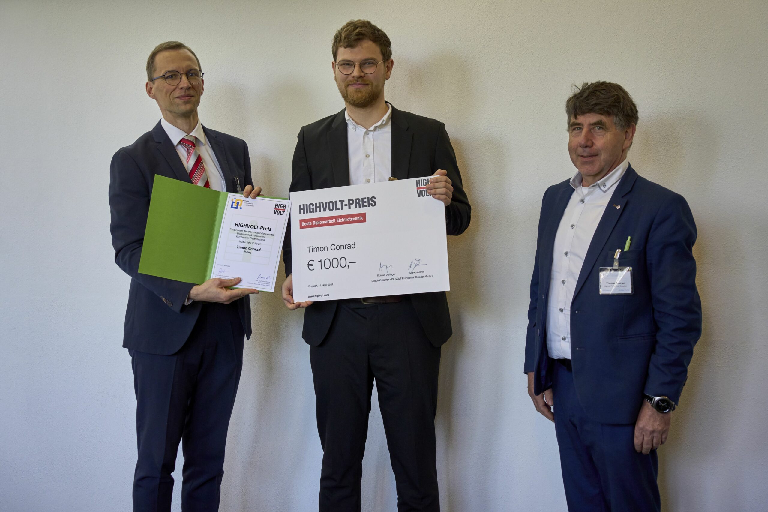 Im Rahmen der Veranstaltung wurde auch der HIGHVOLT-Preis für die beste Abschlussarbeit an der Hochschule Zittau/Görlitz im Bereich Elektrotechnik an Timon Conrad verliehen, der seit dem vergangenen Wintersemester als wissenschaftlicher Mitarbeiter am Lehrstuhl für Elektrische Energiesysteme tätig ist.