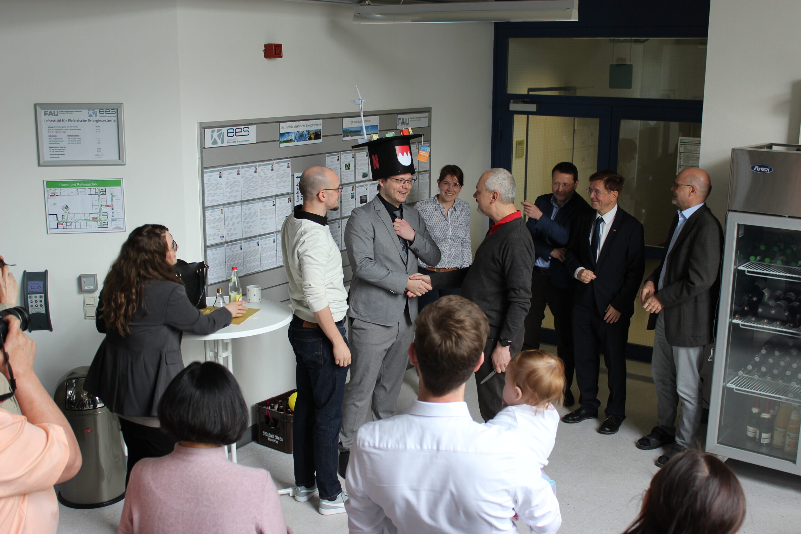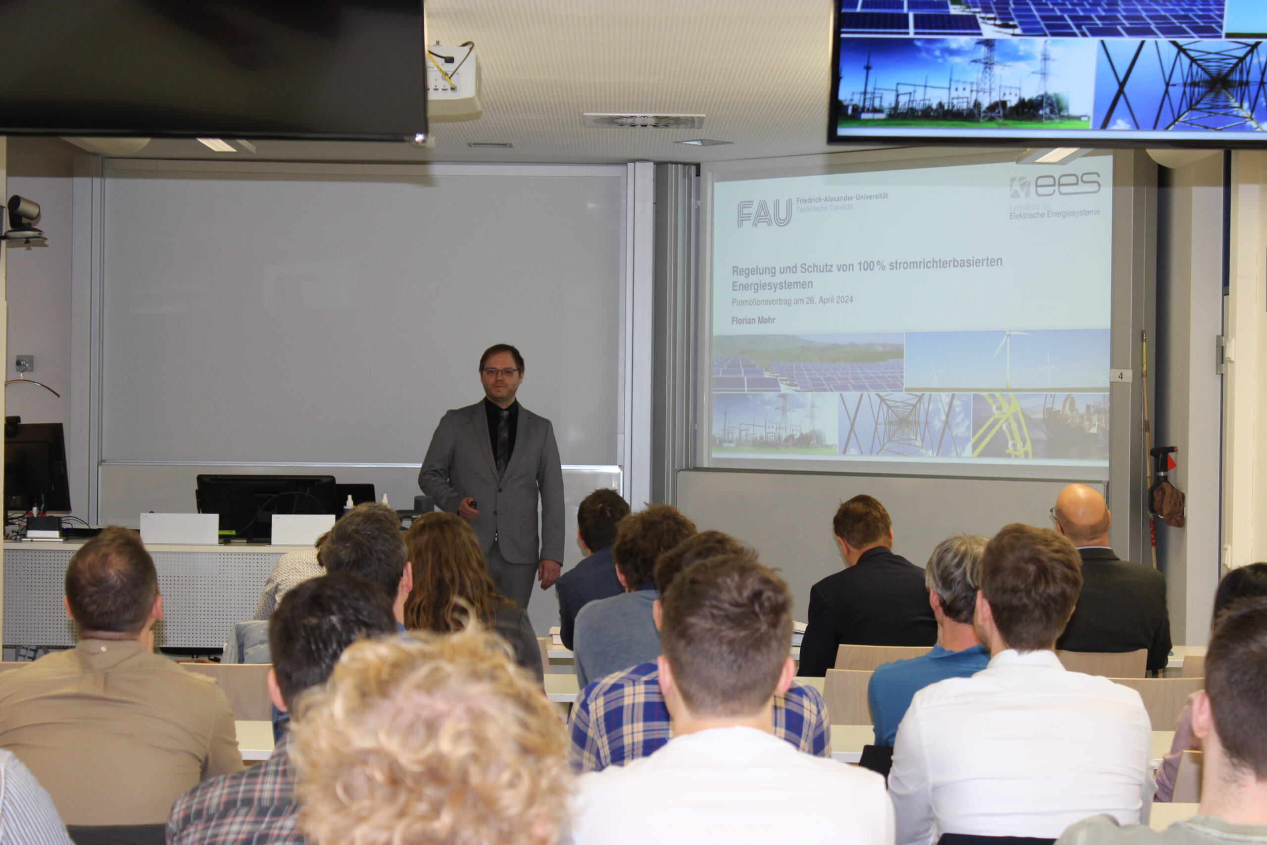 Am 26. April 2024 hat Herr Florian Mahr erfolgreich seine Promotion mit dem Titel „Regelung und Schutz von 100% stromrichterbasierten Energiesystemen“ abgeschlossen. Unter der Betreuung seines Doktorvaters Prof. Dr.-Ing. Johann Jäger hat Florian seine Dissertation in den letzten Jahren an unserem Lehrstuhl angefertigt. Unser Dank gilt auch dem Zweitprüfer Herr Prof. Dr. Lothar Fickert von der TU Graz sowie den weiteren Mitgliedern des Prüfungsausschusses Frau Prof. Dr.-Ing. Susanne Lehner und Herrn Prof. Dr.-Ing. Michael Wensing.