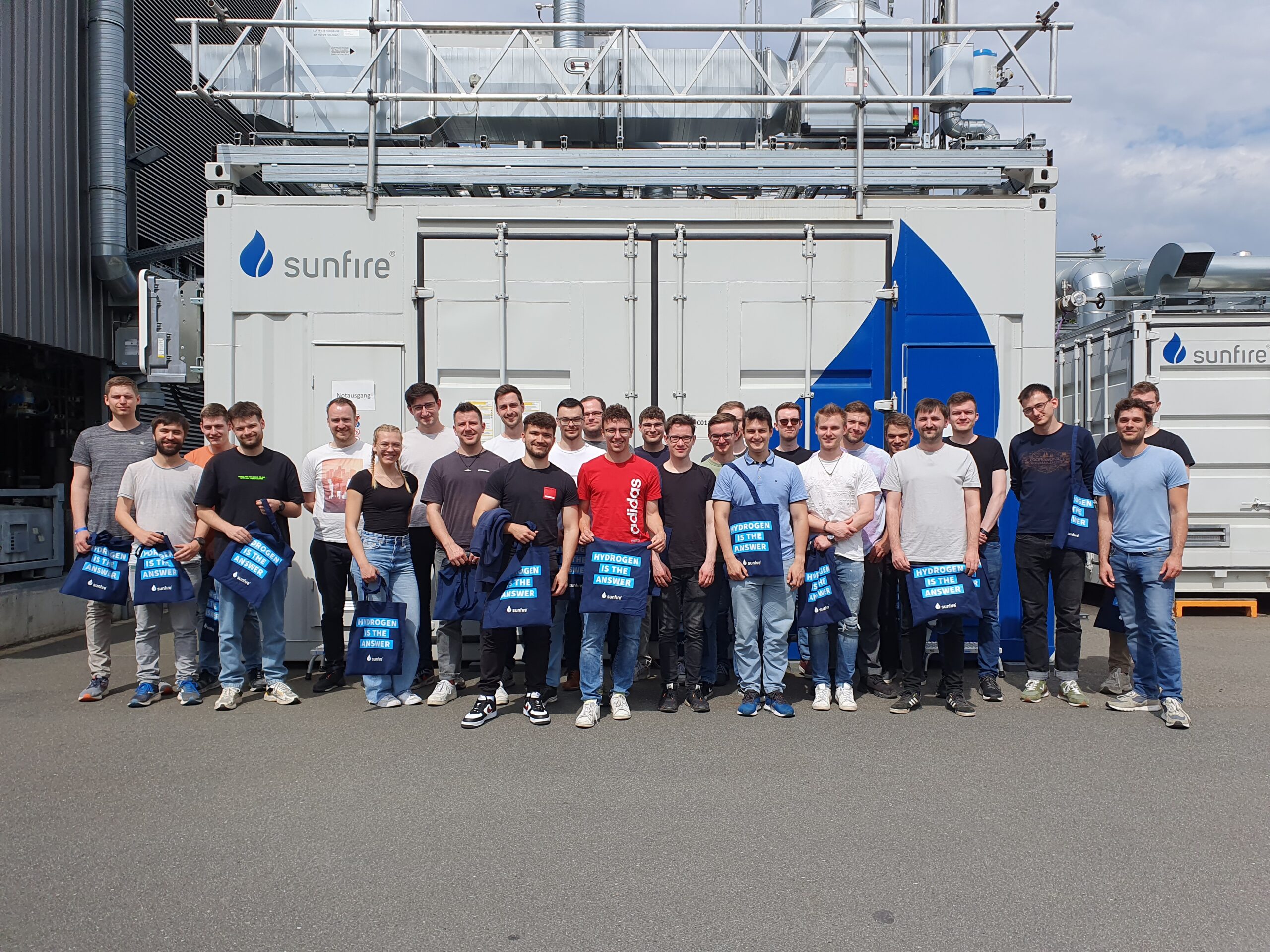 Am letzten Tag der Exkursion stand ein Besuch bei der Sunfire GmbH auf dem Programm. Das Unternehmen entwickelt innovative Elektrolyseure zur Herstellung von Synthesegas und grünem Wasserstoff. Eine Führung durch die F&E-Abteilung und die Prototypenfertigung bot spannende Einblicke in die Zukunftstechnologien der Wasserstoffproduktion.