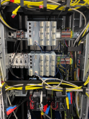 Die Prüfung in der Echtzeitsimulation ermöglicht maximale Flexibilität hinsichtlich der Erweiterung der Netzmodelle und Simulationsszenarien, ohne die Gefährdung kritischer Infrastruktur oder elektrischer Betriebsmittel. Die Bilder zeigen die Umsetzung und den Prüfaufbau im Echtzeitlabor des Lehrstuhls für Elektrische Energiesysteme. Der Power Plant- und Microgrid-Controller sind auf einer sogenannten SICAM A8000, einem Automatisierungs- und Fernwirkgerät, implementiert.