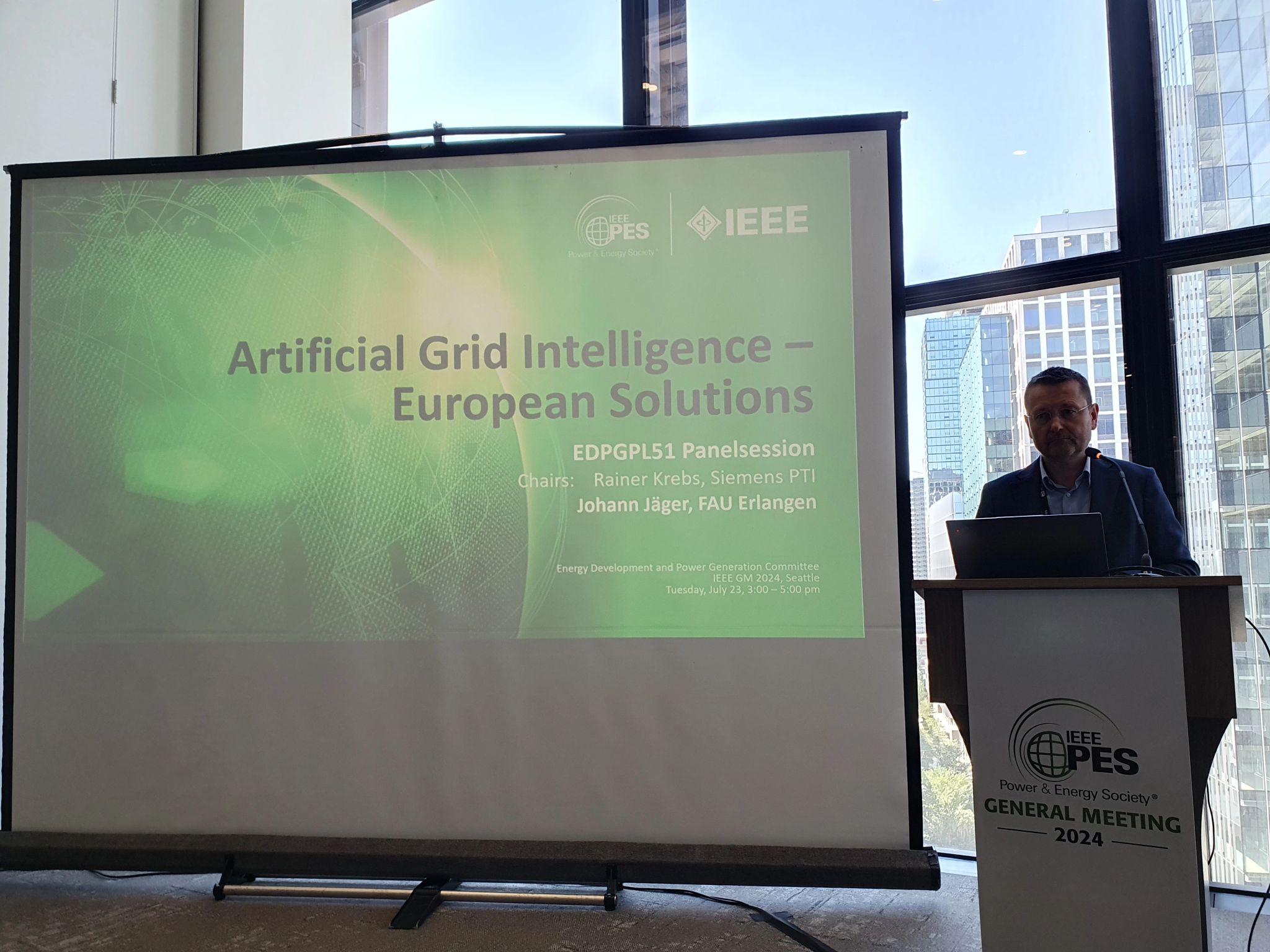 Vom 21. bis 25. Juli 2024 fand das IEEE Power & Energy Society General Meeting in Seattle statt, und unser Lehrstuhl für Elektrische Energiesysteme war mit einer starken Delegation von sieben Mitarbeitern vertreten. Angeführt wurde die Delegation von den Professoren Matthias Luther und Johann Jäger, die unsere Forschung auf internationaler Bühne präsentierten.
