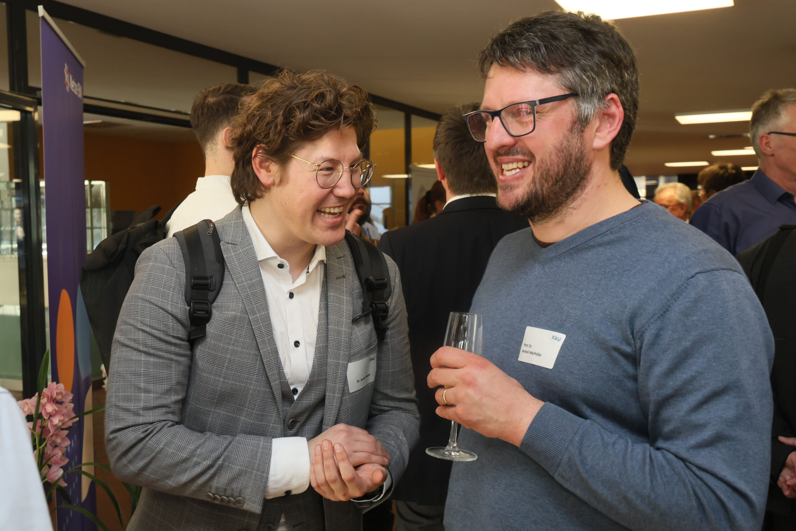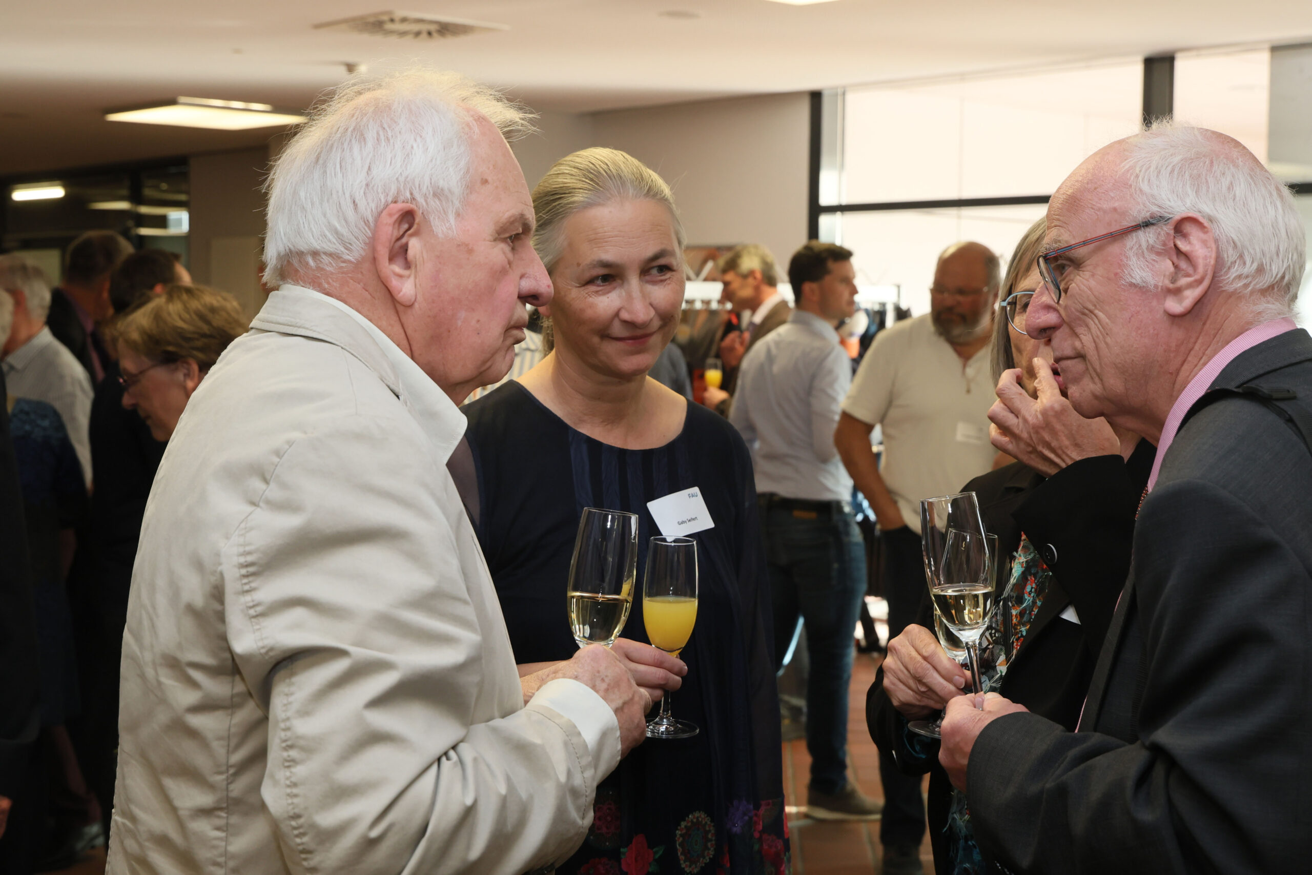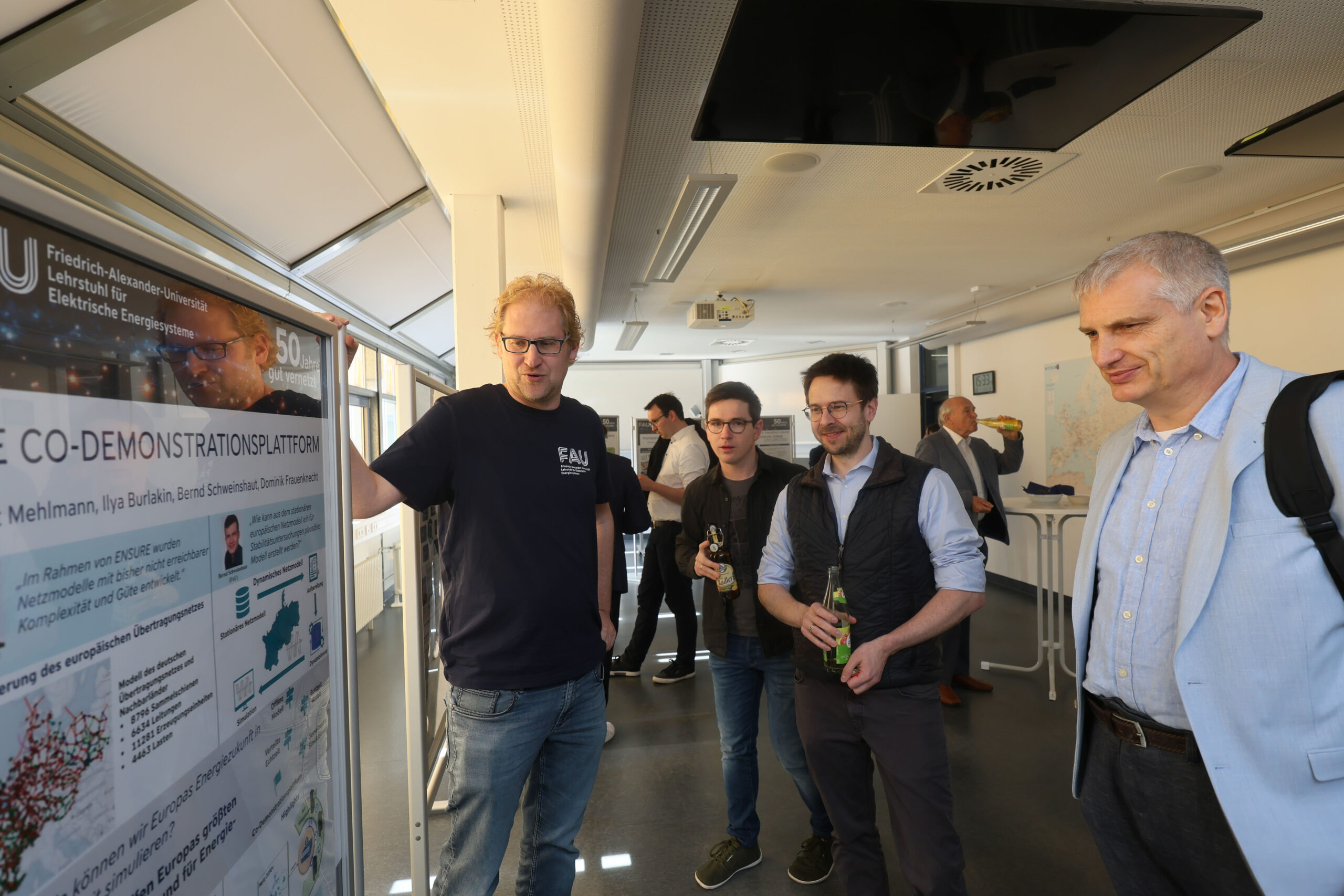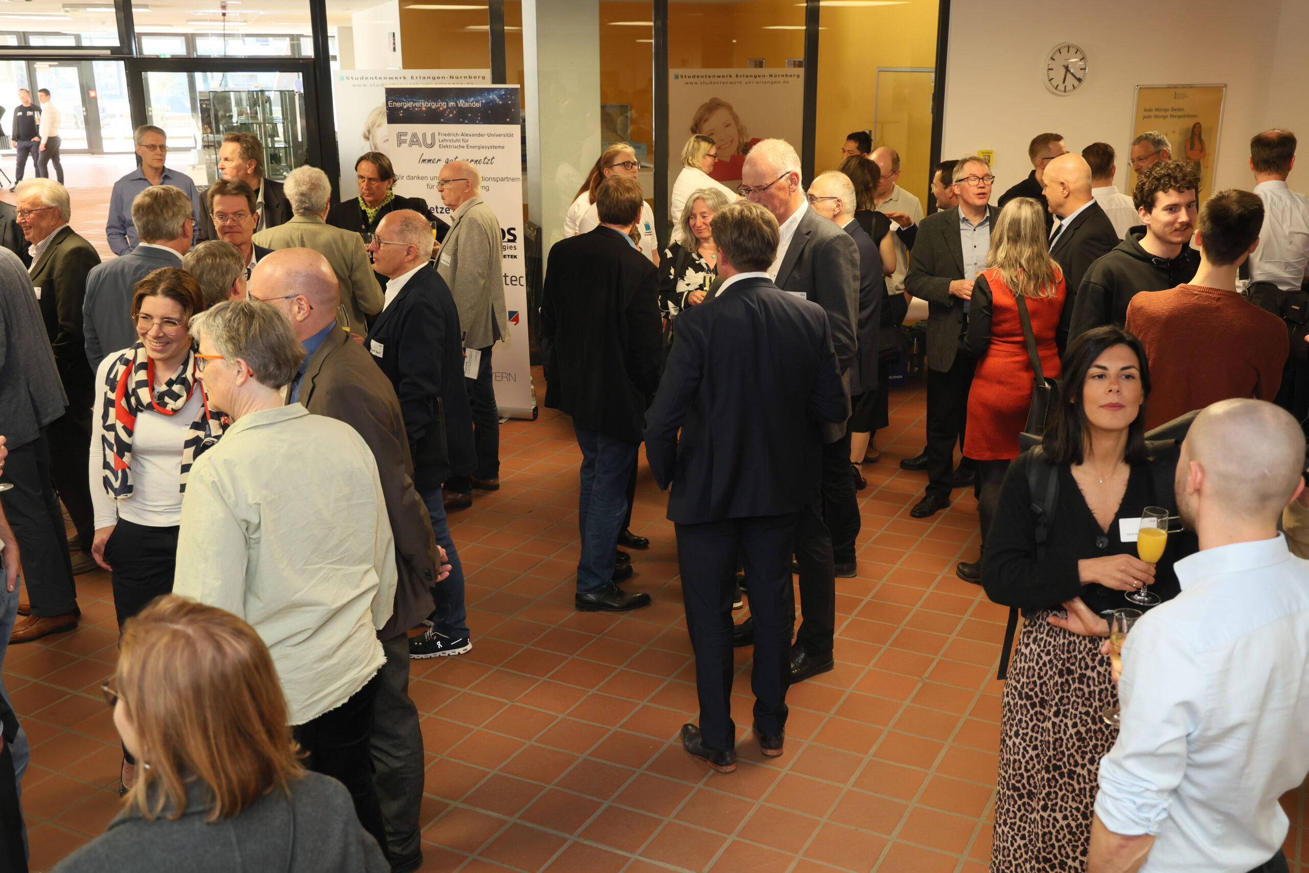 Beim Netzwerkabend mit Sektempfang und anschließendem Abendessen rückten dann nicht nur die Geschichte und wissenschaftlichen Publikationen des Lehrstuhls, sondern auch das Zusammenwachsen des deutschen und europäischen Übertragungsnetzes in den Fokus. Neben den ehemaligen Wegbegleiterinnen und Wegbegleitern sowie den Kooperationspartnern wurden das hervorragende Fundament durch den Lehrstuhlgründer Prof. Hosemann sowie die ehemaligen Professoren Prof. Gretsch und Prof. Herold besonders gewürdigt. Viele Gäste nutzten die Gelegenheit zum Austausch bis in den späten Abend und ließen die Feier gemeinsam in entspannter Atmosphäre ausklingen.